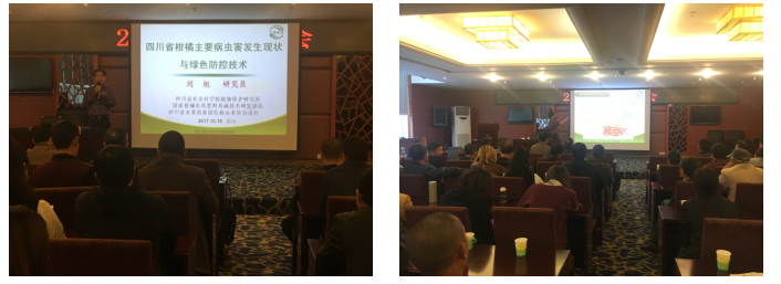 2017年10月18日日博365最新网址举办柑橘种植大户技术培训会,参会种植户150人。会议特邀四川省农科院植保专家刘旭研究员作题为“四川省柑橘主要病虫害发生现状与绿色防控技术”的专题演讲,重点讲了柑橘溃疡病和柑橘黄龙病传播、为害及防控措施,通过与种植户进行的现场问答互动,使参会的种植户充分了解柑橘柑桔溃疡病和柑橘黄龙病这两种检疫性病害,而最经济有效的防控措施就是植物检疫。